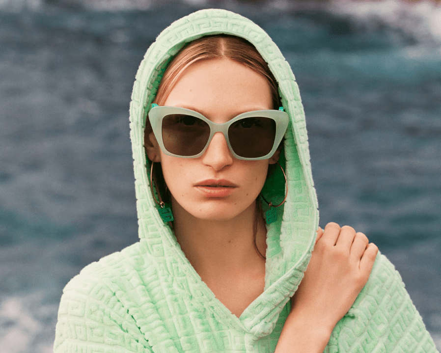 This cotton mini-dress expresses summery lightness and features a delicate check pattern. Inspired by men’s fabric handkerchiefs, one-shoulder silhouette combines retro suggestions with a design with new details and is decorated with the embroidered logo.